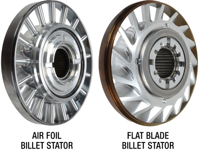 ATI’s billet aluminum stators are lighter by 60%, which lowers the inertia of the spinning unit,