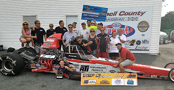 Amanda Boicesco now into her 3rd year racing under the ATI flag turned win light after win light on to bring home the big check at the Mid Atlantic .90’s Association’s Top 8 race at Cecil County Dragway on August 12th! |