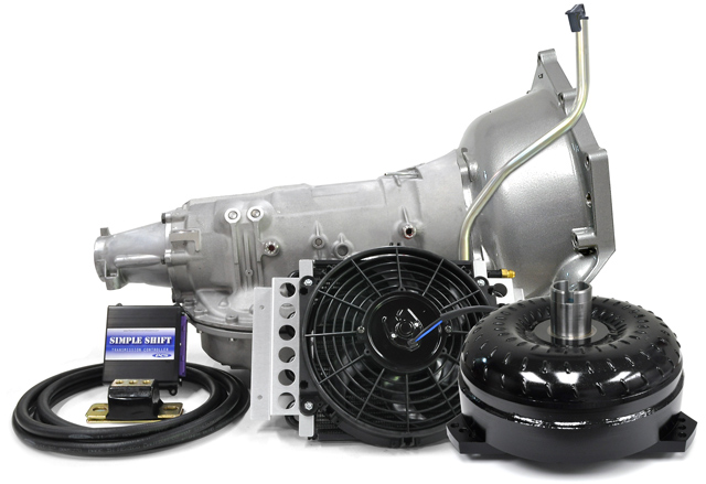 These transmissions are sold in packages for various horsepower ratings. Package includes a 10” SuperStreet Master Converter, transmission cooler with integral fan, cooler install kit, locking dipstick and tube, and polyurethane transmission mount. No electronics. For 4L65E and 4L85E, a transmission pressure and temperature gauge must be installed or warranty is void.
